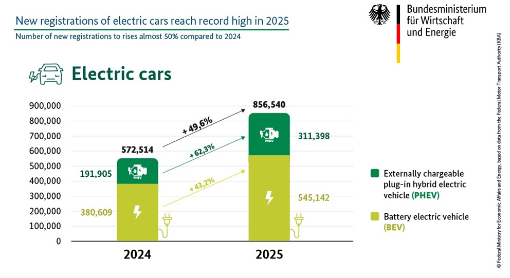 Berlin, 25 February 2026, dtt-net.com – Number of new registrations of electric cars in Germany in 2025 went up for 49,6% compared to 2024, or to total 856 540 cars from 572 514, of…