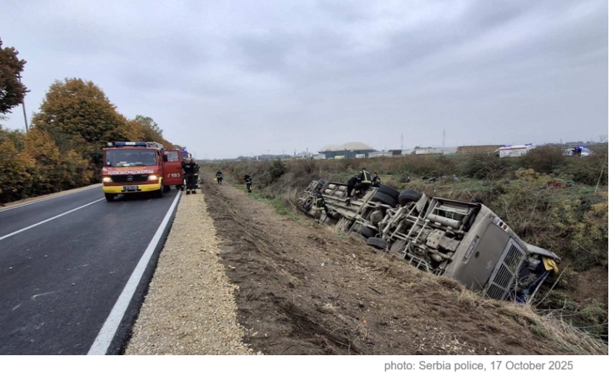 Belgrade, 17 October 2025, dtt-net.com – A bus transporting workers of a company went off road today afternoon in Serbia causing death of 3 and injuring 80, Serbian authorities said.
