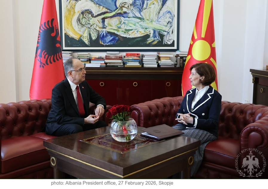 Skopje, 27 February 2026, dtt-net.com – The President of Albania today called for respect or the use of the Albanian language in the neighbouring country and, as he said, “ensure” the fair and adequate representation of the country’s ethnic Albanians in public institutions.