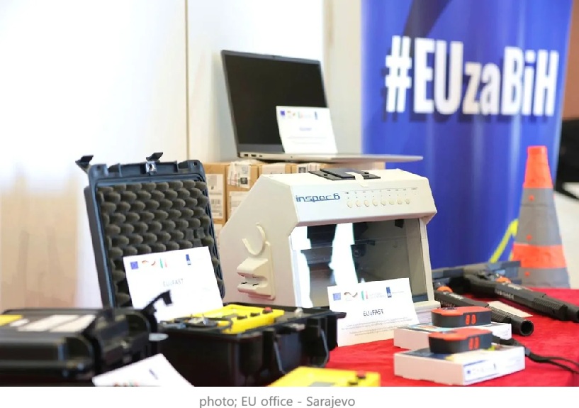 The handover included a package of equipment with specialised magnifiers for document inspection, heartbeat detectors for finding people in hidden compartments of trucks and other vehicles – in situations that often involve inhumane conditions and life-threatening risks – and a patrol boat for responding to incidents on rivers, including search and rescue operations in cases where migrants attempt dangerous crossings and put themselves at risk of drowning, the EU office in Sarajevo said over the equipment of 200,000 euros, under the EU4FAST project.