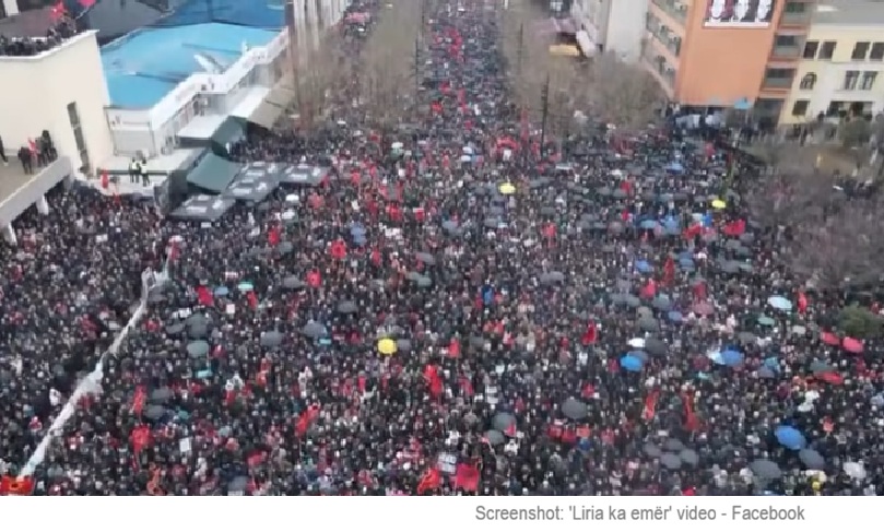 Prishtina, 17 February 2026, dtt-net.com – Dozens of thousands of Kosovo Albanians rallied today in capital Prishtina to show support to former President Hashim thaçi and three other former leaders of the now disbanded Kosovo Liberation Army (KLA) who are indicted of war crimes as trial at The Hague-based court is about to conclude and judges take a verdict.