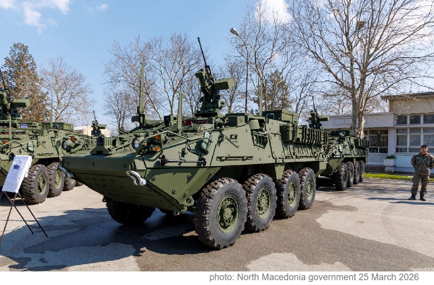 Skopje, 25 March 2026, dtt-net.com - North Macedonia’s Ministry of Defence today displayed to the public the first 17 “Stryker” vehicles that arrived for country's army after the purchase contract from the USA.