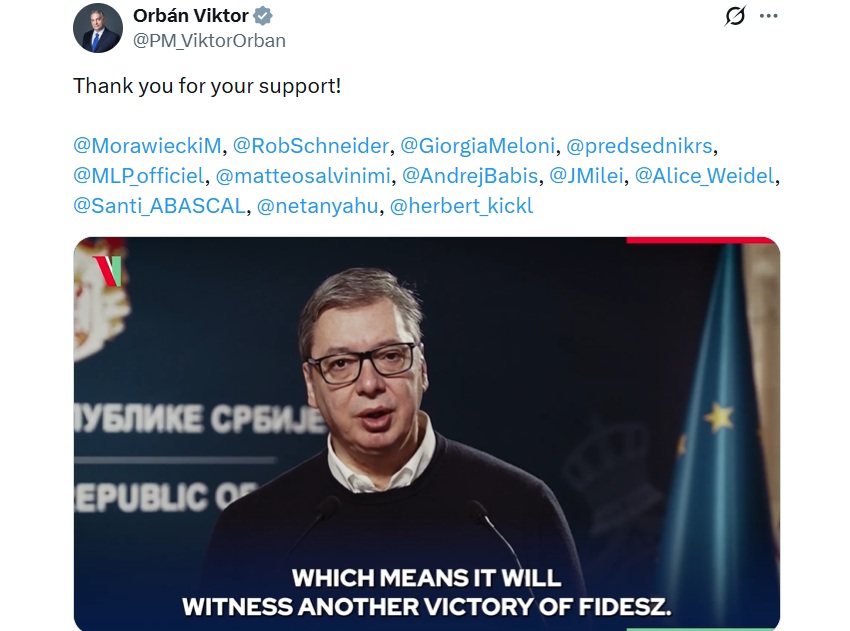 Belgrade, 13 January 2026, dtt-net.com – The President of Serbia has joined a campaign of video support with some other populist politicians and also far-right in European countries to the incumbent Hungarian Prime Minister Viktor Orban for April elections.