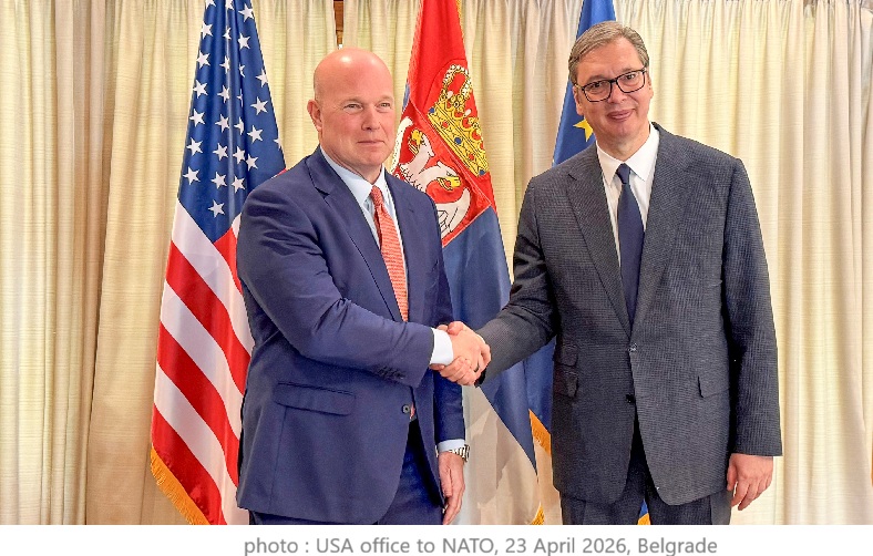 Belgrade, 23 April 2026, dtt-net.com – The USA Ambassador to the NATO, Matthew Whitaker, said he told Serbia’s President Aleksandar Vucic today during a “constructive” meeting that cooperation between Washington and Belgrade would be complicated if Serbia continues its defence and security cooperation with what he called “unreliable partners”, referring to China and Russia, as Vucic and his government have boosted through years purchaces on modern military weapongs from the two countries.